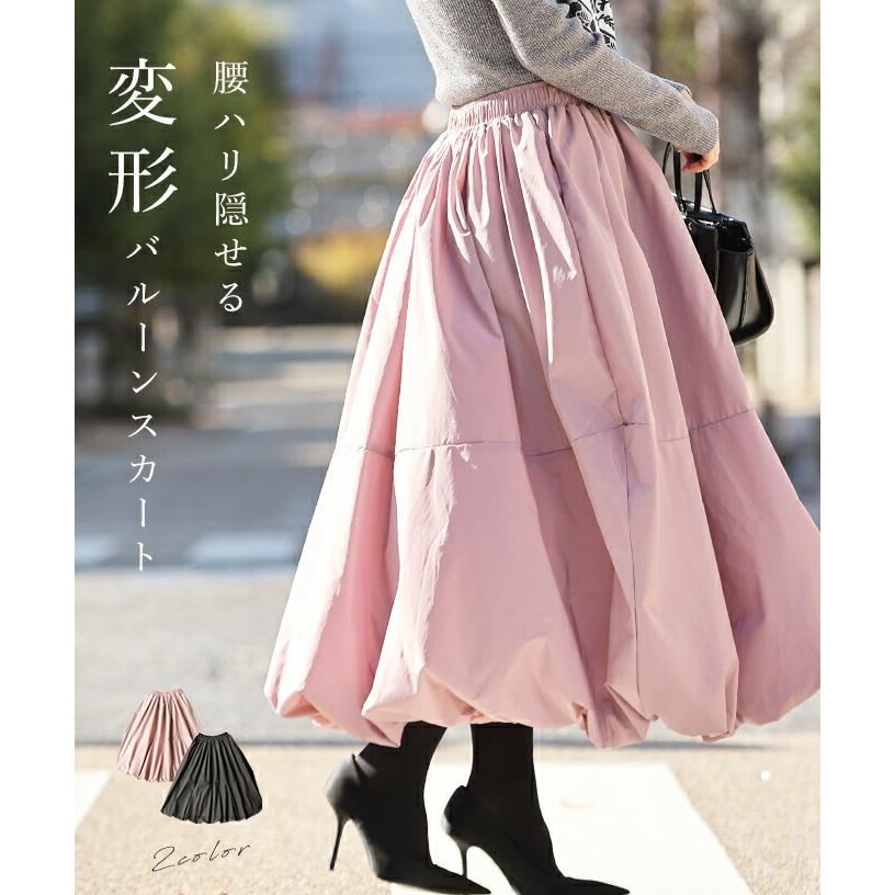 - ピンク色のバルーンスカートは野暮ったい感じがするから