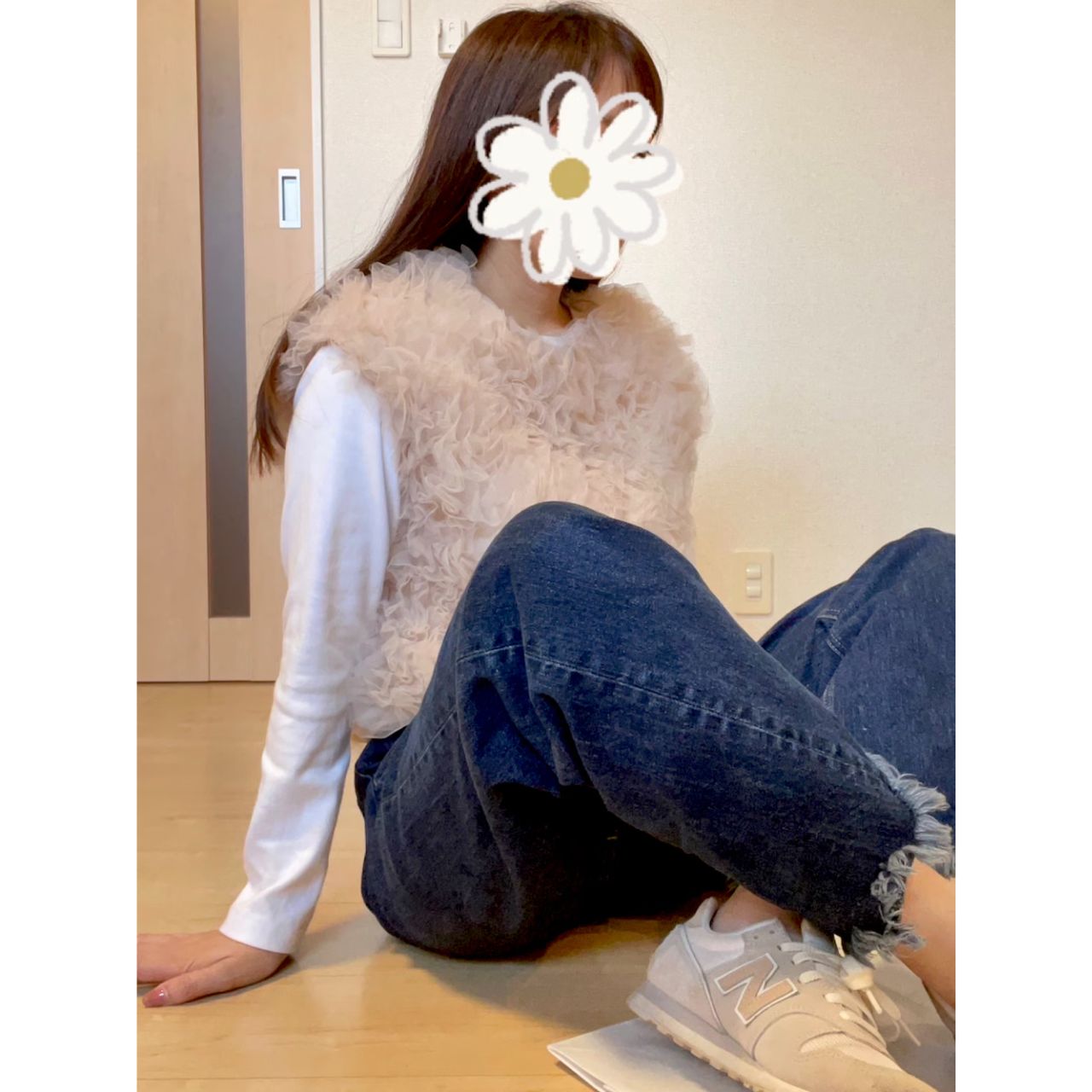 - アイボリーなどの少しゆったりしたサイズのボトムスを合わせる