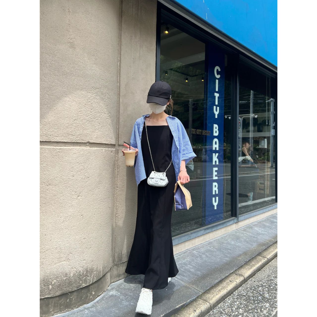 • 左側にロゴが小さく入っているキャップを、ジャケットとミニスカのセットアップと合わせる